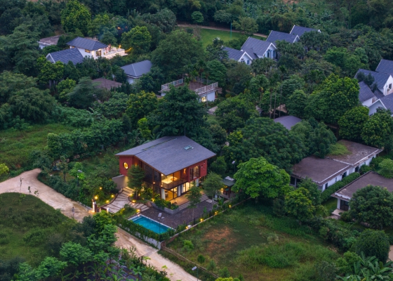 Hà NộiBiệt thự vùng ngoại thành có tạo hình nhà sàn Tây Bắc, mô phỏng một tổ chim giữa núi rừng.